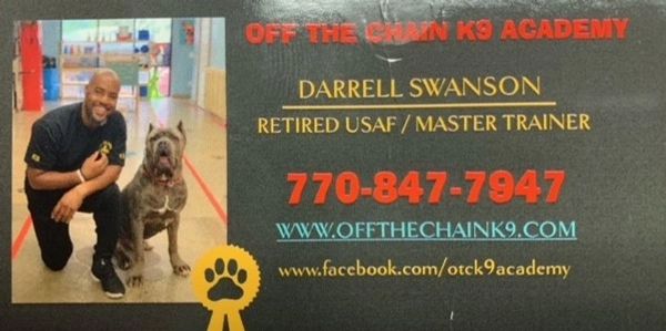 OFF THE CHAIN K9 ACADEMY specializes in Protection Training, Group Classes, Agility, Dog Therapy, Overnight Boarding, Private Lessons, Board Training and Service Dog.